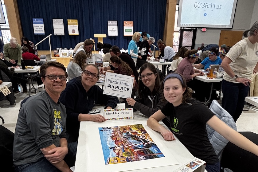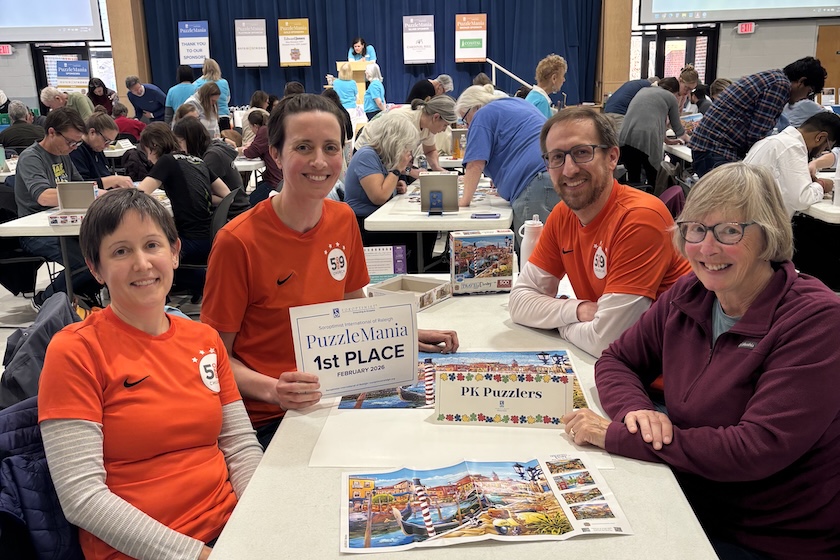 Teams of four raced to complete a 500-piece puzzle, filling the room with energy and focus. Team PK Puzzlers claimed first place with an impressive finish time of 25 minutes and 34 seconds. Team Over Puzzled, last year’s champion, secured second place, and Gettin’ Jiggy Wit’ It took third place. The full top ten results are listed below. The winner for best team name, by popular vote, was More Than a Side Piece.